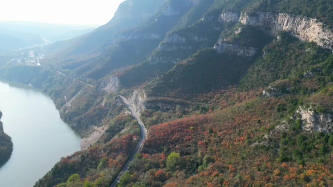 在玨山景區,湖光山水相依、漫山紅葉相映,如畫的秋日盛景美不勝收。許多游客專程前來欣賞秋日太行的絕美風光。