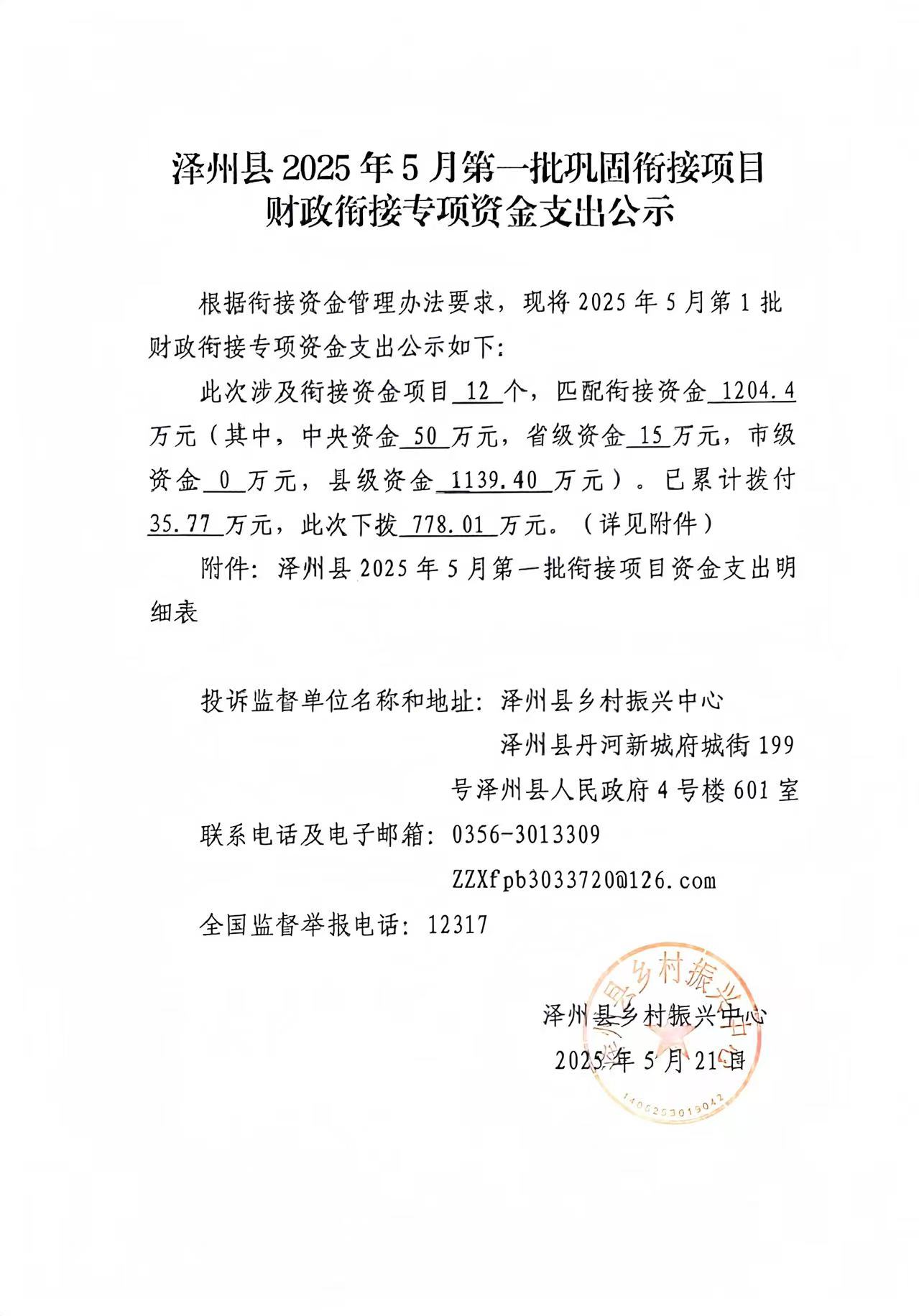 附件:澤州縣2025年5月第一批縣級銜接資金支出明細(xì)表.xlsx