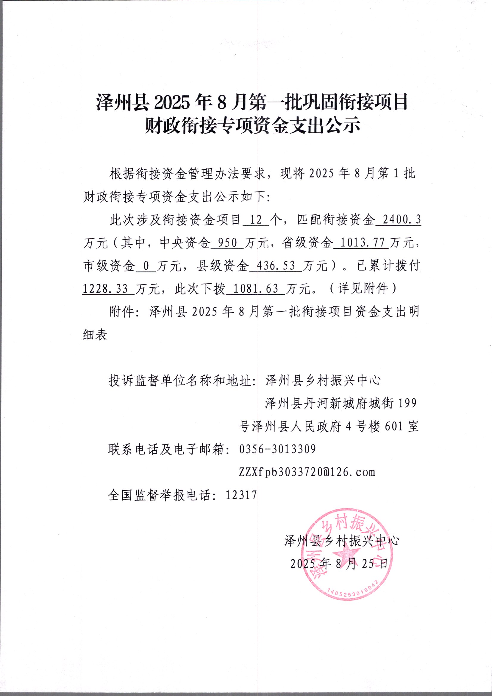 附件:澤州縣2025年8月第一批縣級銜接資金支出明細表.xlsx