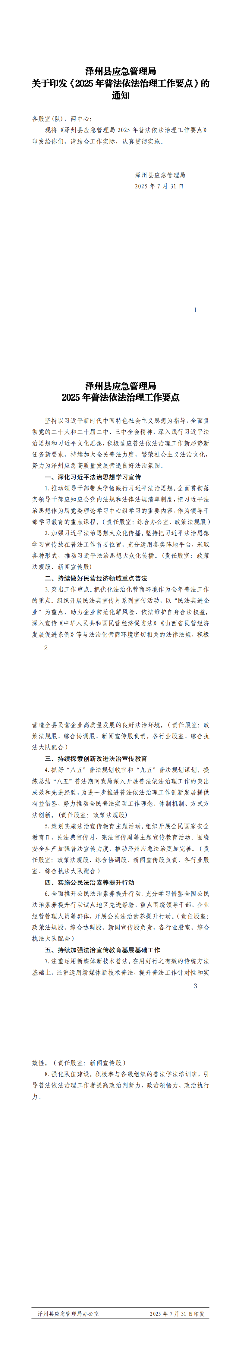 澤州縣應(yīng)急管理局 關(guān)于印發(fā)《2025年普法依法治理工作要點》的通知