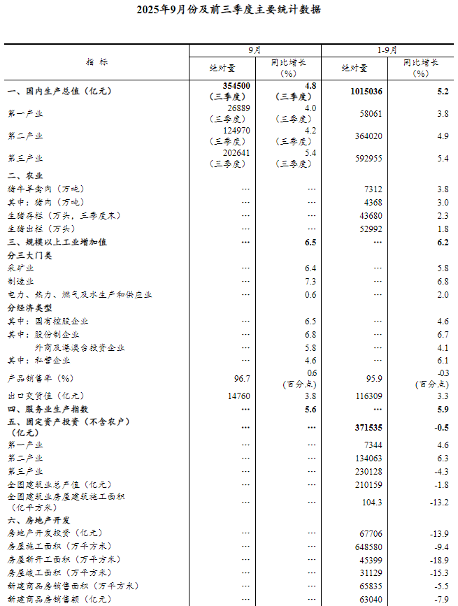 國(guó)家統(tǒng)計(jì)局:前三季度經(jīng)濟(jì)運(yùn)行穩(wěn)中有進(jìn) 高質(zhì)量發(fā)展取得積極成效
