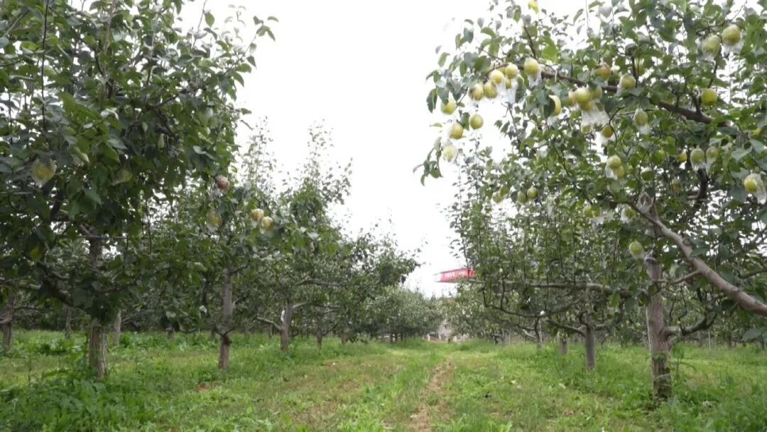 在金村鎮金園農業專業合作社的采摘園內,沉甸甸的玉露香梨掛滿枝頭,黃綠色的果皮泛著細膩光澤,果香四溢。不遠處,富士蘋果種植區也已進入采摘期,紅彤彤的蘋果像小燈籠般點綴在綠葉間,格外醒目。