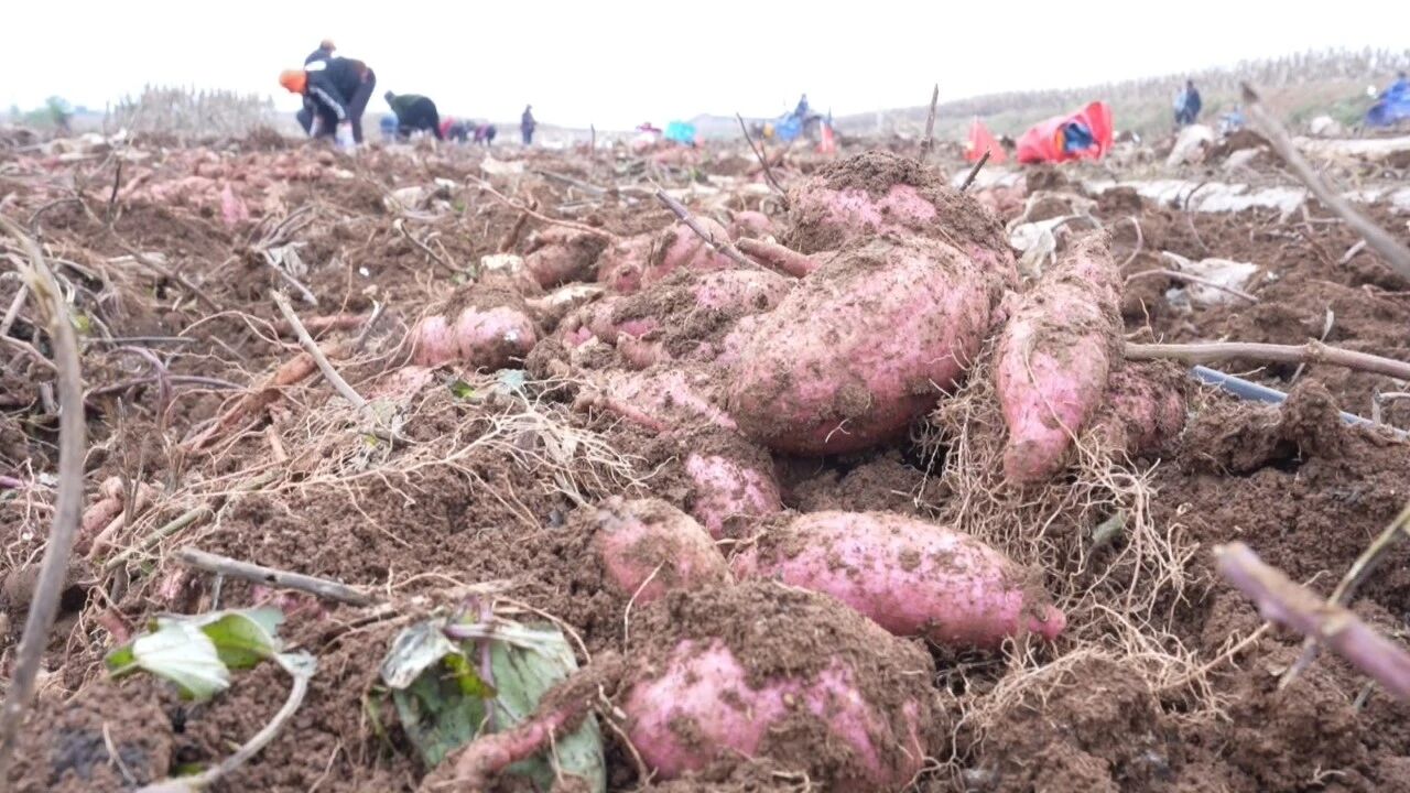 在巴公鎮柳坡掌村的百畝紅薯田,30多人的搶收隊伍正緊張忙碌,熟練地進行刨薯、去泥、裝筐等作業。受近期持續陰雨天氣影響,導致部分農田土壤水分飽和、泥濘濕滑,除使用收獲機械外,當地還調用了小型挖掘機、增加了人手,搶晴抓雨確保收獲進度。
